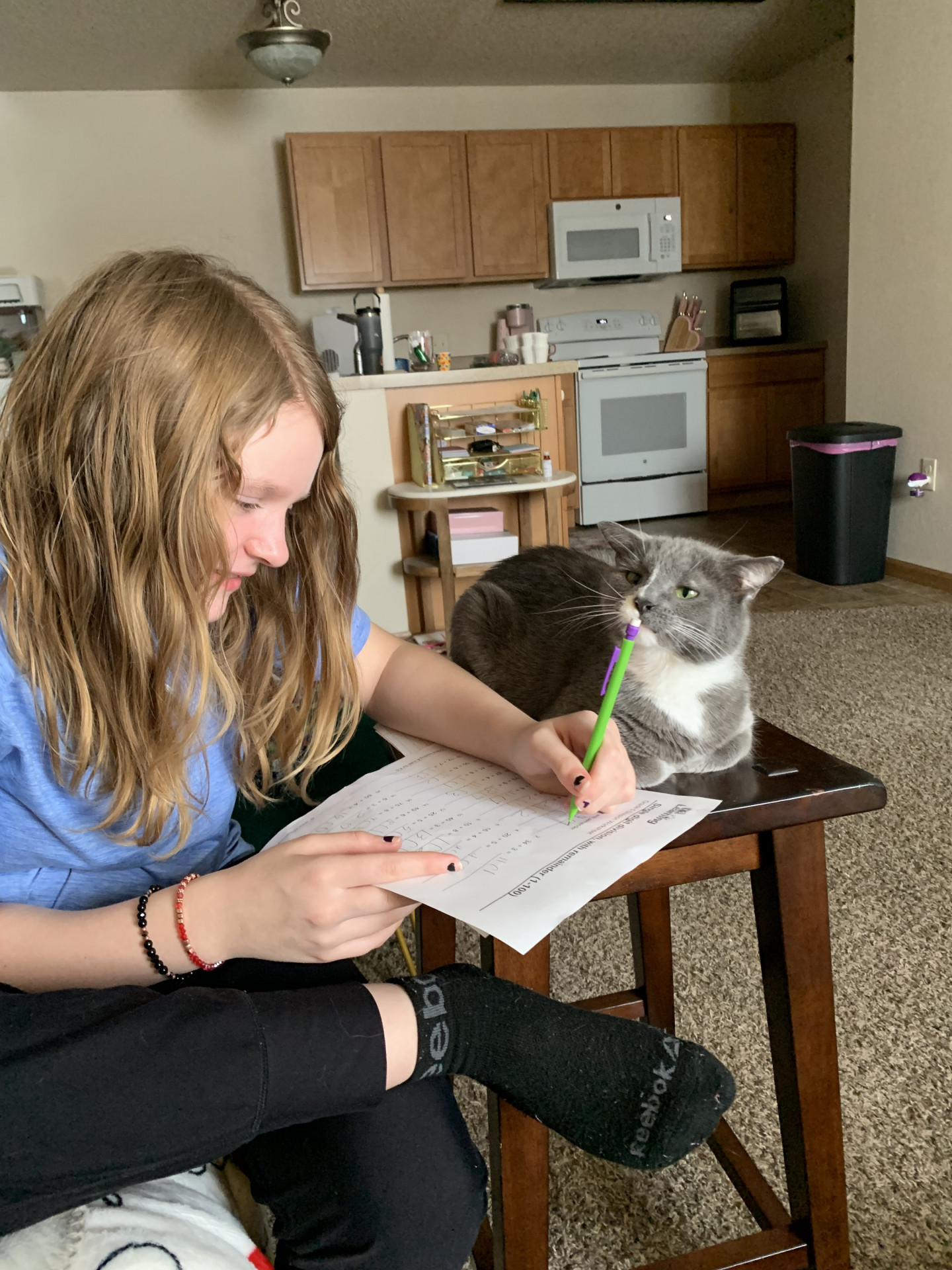Alaira’s favorite subject is math because she gets to learn lots of different kinds of things. She likes that it can be tricky. Right now she really enjoys division and also multiplication because it helps her solve the division problems.