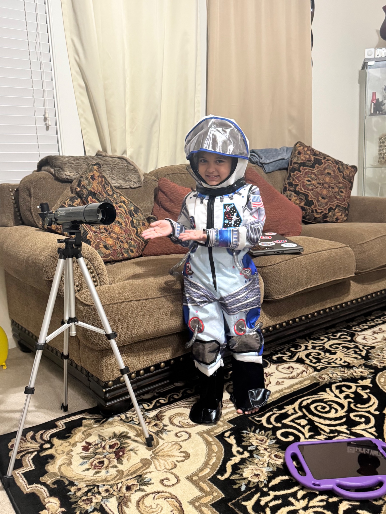 Alysha loves learning new and she is curious like curious George. She says it’s good to be curious right you learn. She loves reading books and seeing educational videos. She binged watches Brain games show. Crazy fan of planets that I learned many things from her and had to google if she was bluffing. She did a small presentation in preK on Kalpana chawala. She wants to be an astronaut. We have watched planets align in 2025 and 2026. She was super excited.