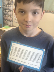 His curiosity, kindness, and love of learning make him a joy in the classroom. He continues to exceed standards and inspire those around him