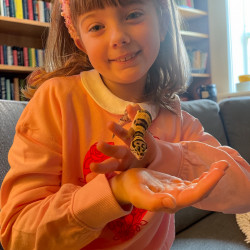 Greta loves Science with Mr. E. (he worked for NASA). Another favorite is history. Her spelling is impeccable, but not an official subject. There are days when music is #1. Circling back to science, since she’s been itty bitty, she’s been interested in the human body. Now, it’s insects, reptiles, & amphibians. At age 6, she was called the “bug scientist” and tutored her classmates on insects. Currently, she's upgraded to “Reptile Lady”. She swims in the pool of science any chance she gets.