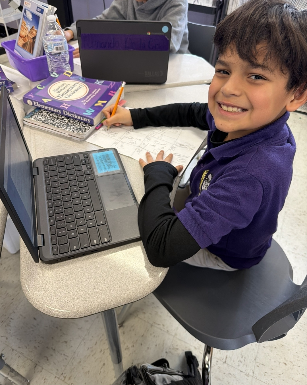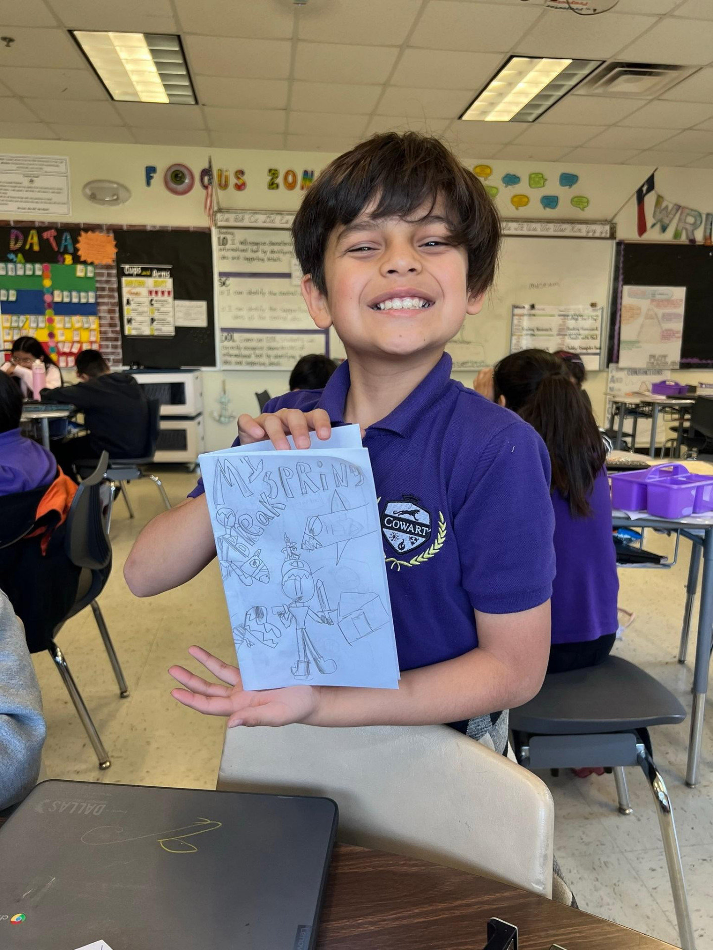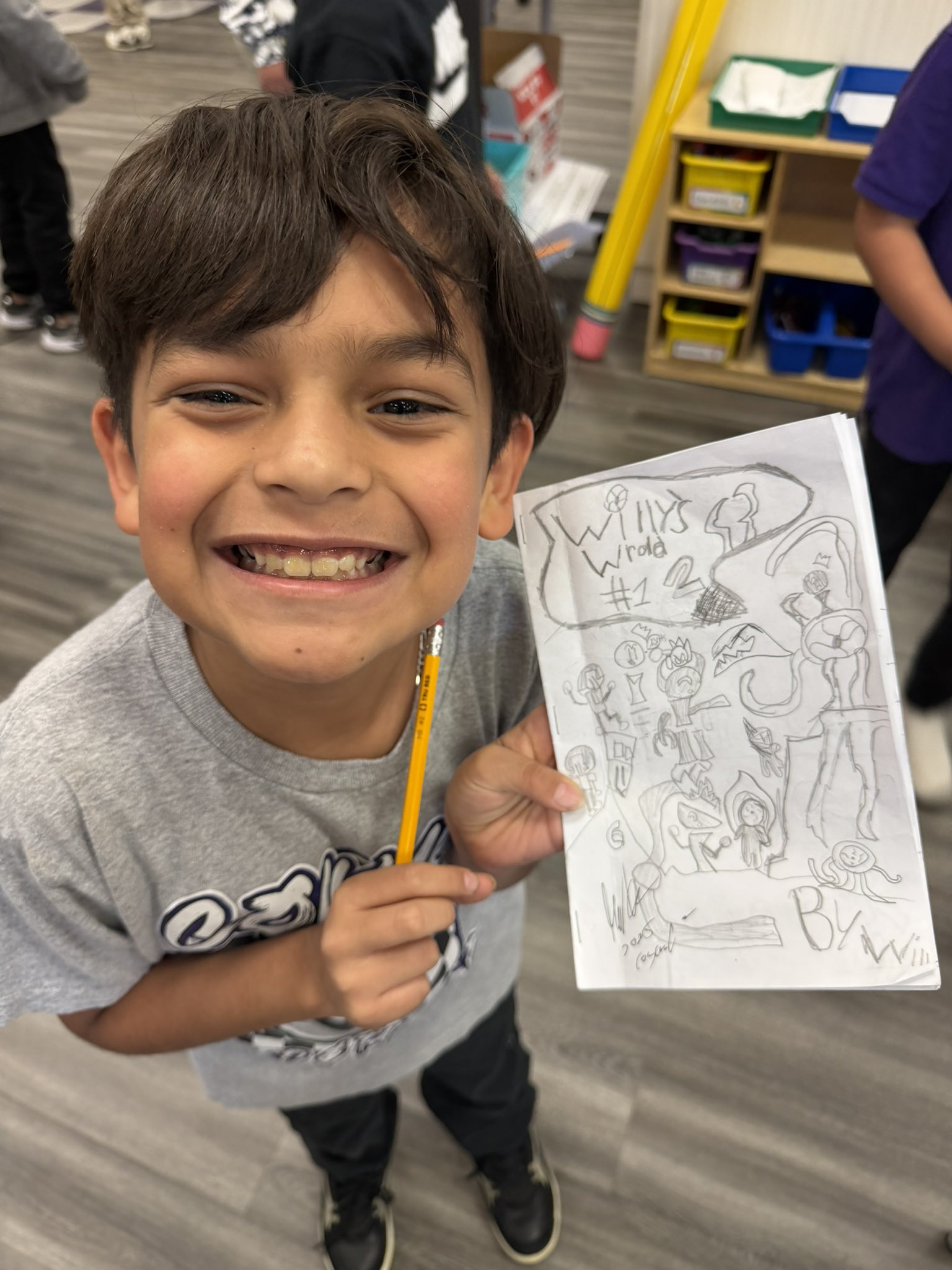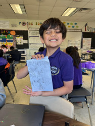 William's favorite subjects are math and science. He says he doesn't like reading but he loves to write comic books. His favorite thing about math is multiplication, his favorite part about science is learning about nature and dinosaur bones. He is a Gifted and Talented student, that helps him challenge himself in being creative and learning how to do research.